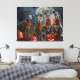 Unleash the spooky spirit with this eerie Halloween design featuring a pack of dogs under a dark, moonlit sky, surrounded by flying bats and glowing pumpkins. Perfect for those who love a touch of frightful fun with their furry friends!