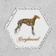 Red brindle greyhound with text "Greyhound" on white background.