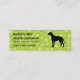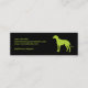 Here's a fun and easy way to advertise any pet service. Whether its a mobile groomer, pet sitting, a rescue group, a breeder, doggy day care, a dog trainer or a dog-walking service, this polka dotted lime green skinny business card features a Greyhound silhouette on the right side of the card looking at your business information. The dog is repeated on the reverse in an opposite color combination. Available in alternate colors with matching products.
