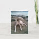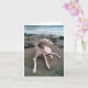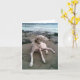 This fun note card features an image of a beautiful creamy off white Greyhound puppy dog happily resting on a rock besides the ocean as the waves roll in.