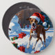 Greyhound Running in Snow with Christmas Hat Button