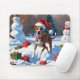 Greyhound Running in Snow with Christmas Hat Mouse Pad