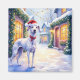 Greyhound Snowy Village Santa Hat Christmas Art Magnet