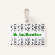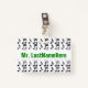 This badge design features a grid of music notes. It also features a customizable name in green colored text within a white colored band. A badge like this could perhaps be worn by a teacher, educator, tutor or professor during the early weeks of a school year or a course. It might help the students learn and remember their teacher’s name. [~Z0000175]
