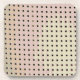 The original pattern by HomeWare on this Coaster is exactly what it's called, a grid pattern made from an original photograph of the back of a chair. Dark gray and brown square dots in rows form the grid. The rows curve slightly as the chair does. Up close, the little square dots are holes with rounded corners and a shadow dimension around the upper and right hand edges. The colors of the body of the chair are muted tones from nature, pale sage green blending into pale mauve, then soft, sandy brown, looking as if they'd been painted on. This abstract design, with its sophisticated color scheme, has a very modern look.