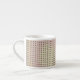 The original pattern by HomeWare on this Espresso Cup is exactly what it's called, a grid pattern made from an original photograph of the back of a chair. Dark gray and brown square dots in rows form the grid. The rows curve slightly as the chair does. Up close, the little square dots are holes with rounded corners and a shadow dimension around the upper and right hand edges. The colors of the body of the chair are muted tones from nature, pale sage green blending into pale mauve, then soft, sandy brown, looking as if they'd been painted on. This abstract design, with its sophisticated color scheme, has a very modern look.