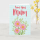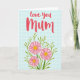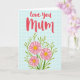 This greeting card features a loving message placed near the top, set against a light pastel-blue background with a faint grid pattern. The words sit centered in a coral-pink handwritten style, drawing the eye first and giving the design a warm, close-to-the-heart feel ❤️. Beneath the text, three stylized flowers fill the lower half, like a small bouquet offered to someone special. Each bloom has soft pink petals that radiate outward around sunny yellow, dotted centers, suggesting an easy, friendly kind of affection. Thin green stems and a few simple leaves rise up to support the blossoms, adding a gentle, growing-together mood 🌼. A thin white outline traces both the lettering and the floral shapes, helping them stand out clearly from the patterned background. The pastel-blue backdrop shows a subtle, evenly spaced grid behind the coral message and the trio of pink flowers.