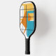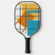 This pickleball paddle has a mid-century modern design of three rectangles, orange, green, and turquoise, with a white rectangle inside each. If you like the design but prefer different colors, message me.