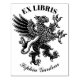 An Ex Libris rubber stamp with a heraldic Griffin motif with curved Ex Libris text at the top in bold stylish serif type. Name text at the bottom in a stylish script font. Add your first and last name to customise.