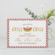Get the barbecue ready to grill and chill! This invitation would be perfect for birthday parties, summer celebrations, backyard BBQ’s or just because! The invitation is fun and casual and it features a gingham pattern, a delicious hotdog illustration – all tied together in an exciting layout.