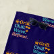 Navy blue background. Quote: Grill. Chill. Wave. Repeat. as a pattern.