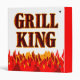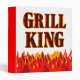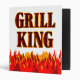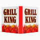 A recipe binder that reading Grill King, funny bbq saying in a western flaming font for cooks and cookouts with graphic art of red and orange flames at the bottom of the design, a red spine and a black lining inside. Click Customize It to add your name or message