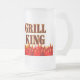 Grill King funny bbq saying in a western flaming font for cooks and cookout chefs. With graphic art of red and orange flames at the bottom of the design.