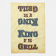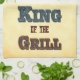 A chrome plated flaming design reading Grill King funny bbq saying in a western flaming font for cooks and cookout chefs. With graphic art of red and orange flames at the bottom of the design.