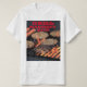 A shot of a Grill shot close up with flames and Hamburgers and Hot Dogs cooking with a Flame. Thats on a T-Shirt.