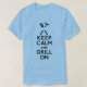 Light blue basic t-shirt with “Keep Calm and Grill On” in bold black letters topped with barbeque utensils and a hotdog. See the entire Father's Day Apparel collection in the PARTY FAVORS section.