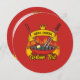 Barbeque grill over flaming charcoal, scroll banner with custom text over crossed tongs and brush.
