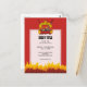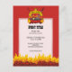 Barbeque grill over flaming charcoal, scroll banner with custom text over crossed tongs and brush.