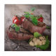 Grilled bbq steaks with fresh herbs and tomatoes tile