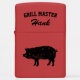 Grillmaster pig logo custom name BBQ gift idea Zippo Lighter. Cool personalized Birthday gift idea for dad, husband, grandpa, boyfriend, father, friend, boss, pork lover, bacon lover etc. Add your own name or funny quote. Available in red, gray and metallic colors. Great for grilling, outdoor cooking and more.