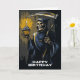 Send your birthday wishes with a quirky twist! This bold birthday card features the Grim Reaper and his scythe holding a cupcake topped with a single burning candle. It’s the perfect way to celebrate another trip around the sun with humor and style.