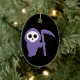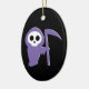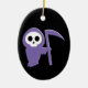 Adorable ornament with cute Grim Reaper! One side has purple robed reaper against black background and the reverse has black robed reaper on a purple against a purple sky. An adorable addition to your Hallowe'en tree or other Trick or Treat decor.