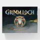 Add a refined touch of dark fantasy to your workspace with this Grimmloch acrylic paperweight, featuring the official emblem of the narrative-based RPG by Opulent Code LLC. The detailed horned goat crest, paired with rich teal and gold tones and full Grimmloch branding, creates a bold and polished design with a glass-like finish.