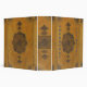 A grimoire /ɡrɪmˈwɑr/ is a textbook of magic. Such books typically include instructions on how to create magical objects like talismans and amulets, how to perform magical spells, charms and divination and also how to summon or invoke supernatural entities such as angels, spirits, and demons.[1] In many cases, the books themselves are also believed to be imbued with magical powers, though in many cultures, other sacred texts that are not grimoires, such as the Bible, have also been believed to have supernatural properties intrinsically.This Binder is unique and has a mid-evil book cover.