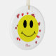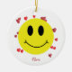 Grin Face with Red Hearts Personalized Ceramic Ornament