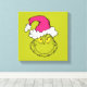 This fantastic, bold illustration is a close-up portrait of the Grinch in full mischievous mode! He has his signature sly grin and bright yellow eyes, but his look is updated with a large, fluffy Santa hat in a fun, unexpected pink/fuchsia color instead of the traditional red. This graphic is perfect for anyone who loves the holidays but embraces a non-traditional, delightfully grumpy, and colorful style!