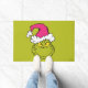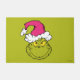 This fantastic, bold illustration is a close-up portrait of the Grinch in full mischievous mode! He has his signature sly grin and bright yellow eyes, but his look is updated with a large, fluffy Santa hat in a fun, unexpected pink/fuchsia color instead of the traditional red. This graphic is perfect for anyone who loves the holidays but embraces a non-traditional, delightfully grumpy, and colorful style!