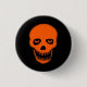 A button badge for goths, skull fans and bat lovers, with a graphic of a grinning orange skull with bats in his eyes on a black background. You can personalize the button by adding your own text, also change the black background colour, with the customize button.