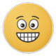 A face with open eyes and a big open (grinning) mouth, showing teeth.