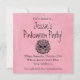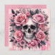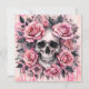 This gothic Pink-o-ween style invitation features watercolor artwork of a human skull surrounded by lush pink roses, black leaves, and spiderweb accents. The design blends dark macabre elements with soft romantic florals, creating a striking balance between beauty and mortality.