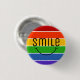Always wear a smile. This rainbow button has the word 'smile, with a cartoony smile underneath.