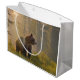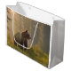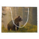 This large gift bag features a magnificent grizzly bear in an atmospheric forest . Room for text of your choice to be added.