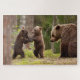 Grizzly Bear Mama With Playful Cubs Jigsaw Puzzle