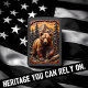 This lighter features a highly detailed, high-relief image of a massive, brown grizzly bear stepping over fallen timber. The bear's face is rendered directly toward the viewer, showcasing its dimensional fur texture and powerful claws. The scene is set in a dense forest with dark green pine trees framing a massive, rocky mountain peak. The background sky is a warm orange and yellow, suggesting a dramatic sunrise or sunset. The entire background landscape has a luxurious, soft-leather look. This artwork highlights the simple, yet profound acts of comfort and support provided by farming professionals, symbolizing warmth and peace. The highest quality print and artwork used on the surface is so exceptional it creates a stunningly realistic tactile illusion; you could easily mistake the textures for genuine leather. The entire design is set on a matte black lighter casing. The design may look real due to the high detail in the artwork.
