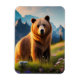 Cute grizzly bear sitting on the mountainside in pink wildflowers