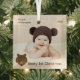 Grizzly Bear Photo Baby First Christmas Glass Ornament