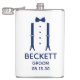 This 8 oz. flask is a great for the groom. If all your wedding party will be wearing suits this design with suspenders and a bow tie in blue would be perfect. Casual yet formal. It'd be great for a bachelor weekend or bachelor party. A fun gift for a great time. Get one for everybody in the bridal party - they'll love them! The title can be changed to best man, groomsman, usher, etc.