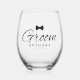 Groom Bow Stemless Wine Glass