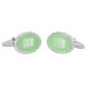 Groom cufflinks shown in silver plated in a apple green color with white text.