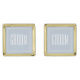 Groom cufflinks shown in gold plated in a pastel color called Blue Fog with white text.