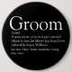 Personalize with the groom's definition to create a unique gift for bachelor stag parties and weddings. A perfect way to show him how amazing he is on his big day and a perfect keepsake for the rest of his life. Designed by Thisisnotme©
