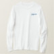 For the Groom shown is a white color long sleeve pullover sweatshirt to relax in. Royal Blue color embroidered text on the front upper left chest area.