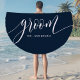 Show off your groom status with this personalized "Groom" beach towel in a modern navy and white design. Perfect for honeymoon adventures, beach outings, or lounging poolside, this towel features the groom's name, adding a custom touch to your summer essentials. Crafted with comfort and style in mind, it's an ideal gift for newlyweds or as a memorable engagement or wedding present.