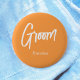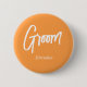 Groom Orange White Script Wedding Button