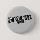 Groom in big, bold letters and a black bow tie wedding party button or pin. Perfect for Jack and Jill showers, bachelor parties, wedding rehearsals and dinners, and any pre-wedding events. Please visit Smilin' Eyes Treasures for a wider selection of bridal and wedding cards, invitations, and gifts.