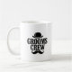 Fuel up for the big day with this stylish "Grooms Crew" coffee mug! Featuring a dapper vintage design with a classic bowler hat and mustache, this mug is the ultimate accessory for the groom’s squad.